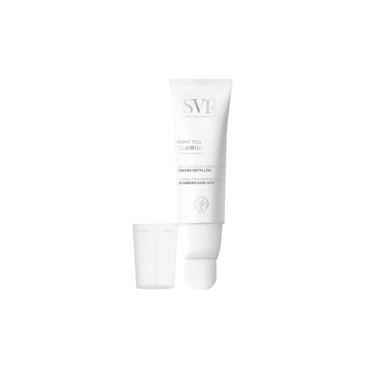 Peeling nocturno ultra suave, corrección de machas oscuras. Como crema nocturna diaria, aplicar una capa fina con el pincel sobre todo el rostro y alisar con la yema de los dedos. Como mascarilla, aplicar una capa gruesa 1 vez por semana y dejar actuar toda la noche.
